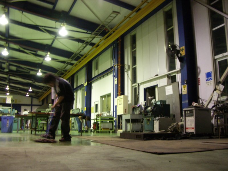 工場掃除中