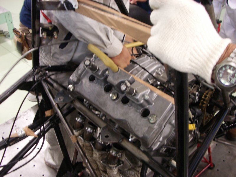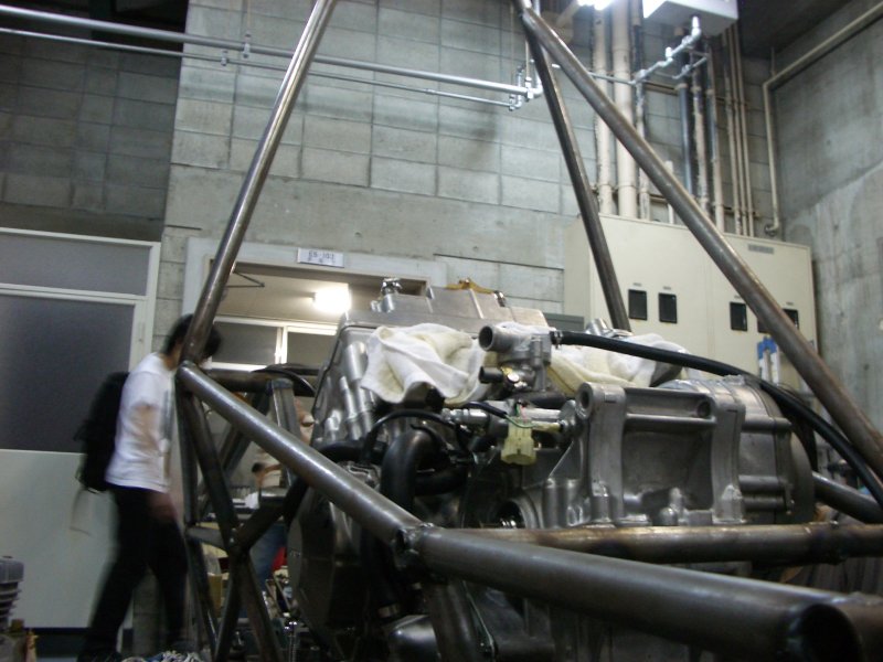 フレームにエンジン搭載